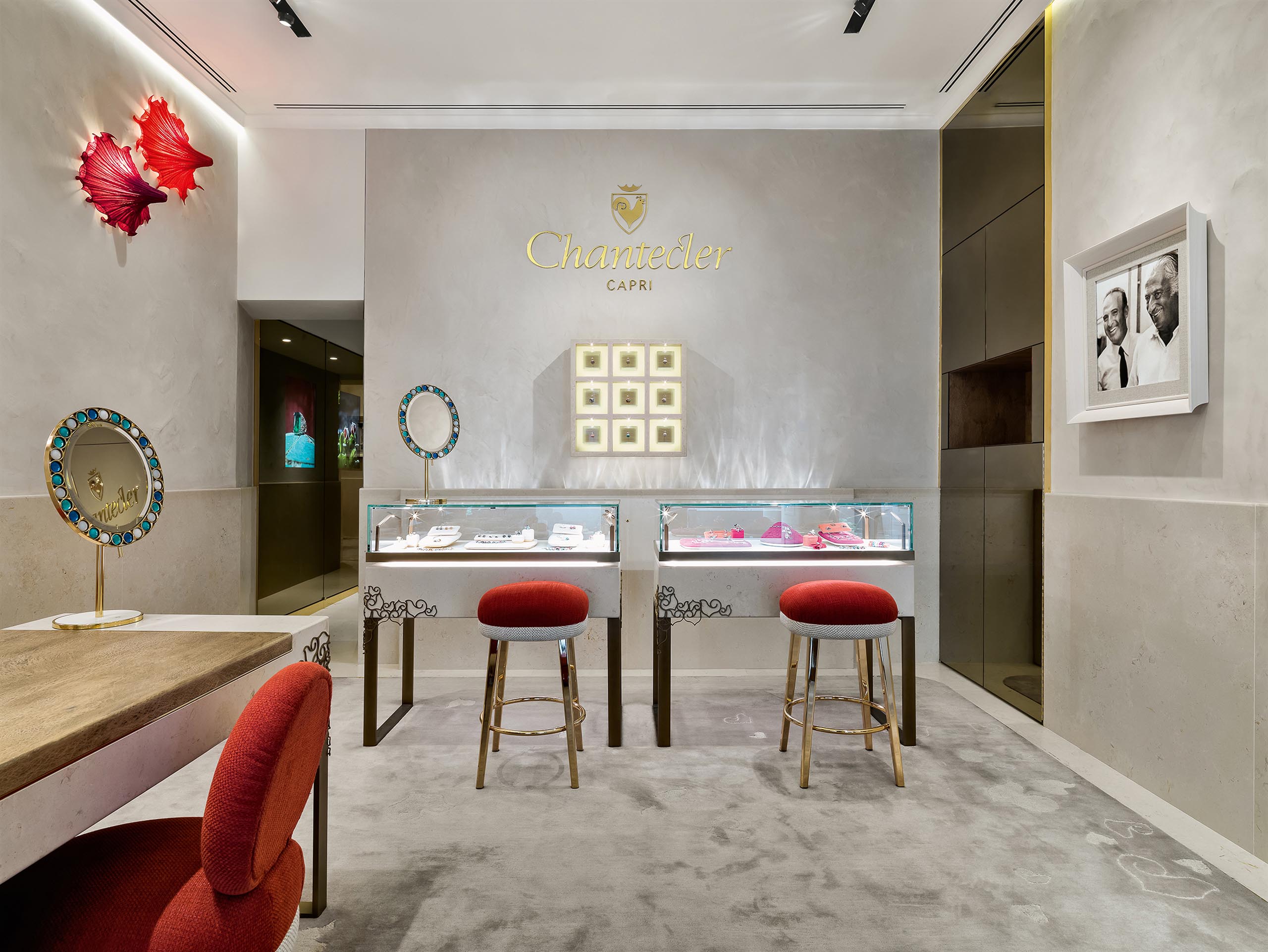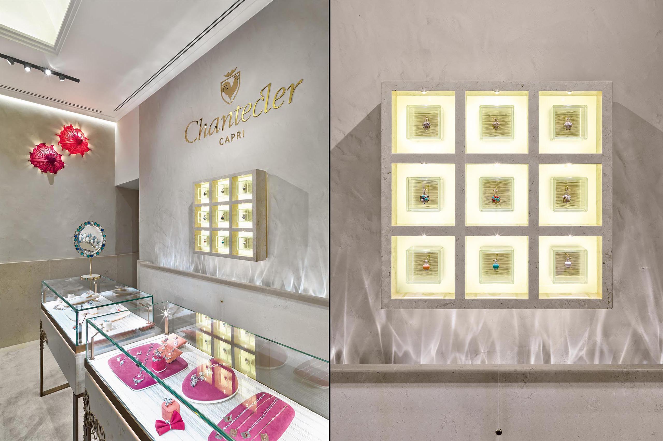 The historic Chantecler boutique in Milan’s via Santo Spirito was subjected to a careful restyling, based to a new boutique design concept with shapes, colors and atmospheres inspired by the characteristics that make the island of Capri so special.