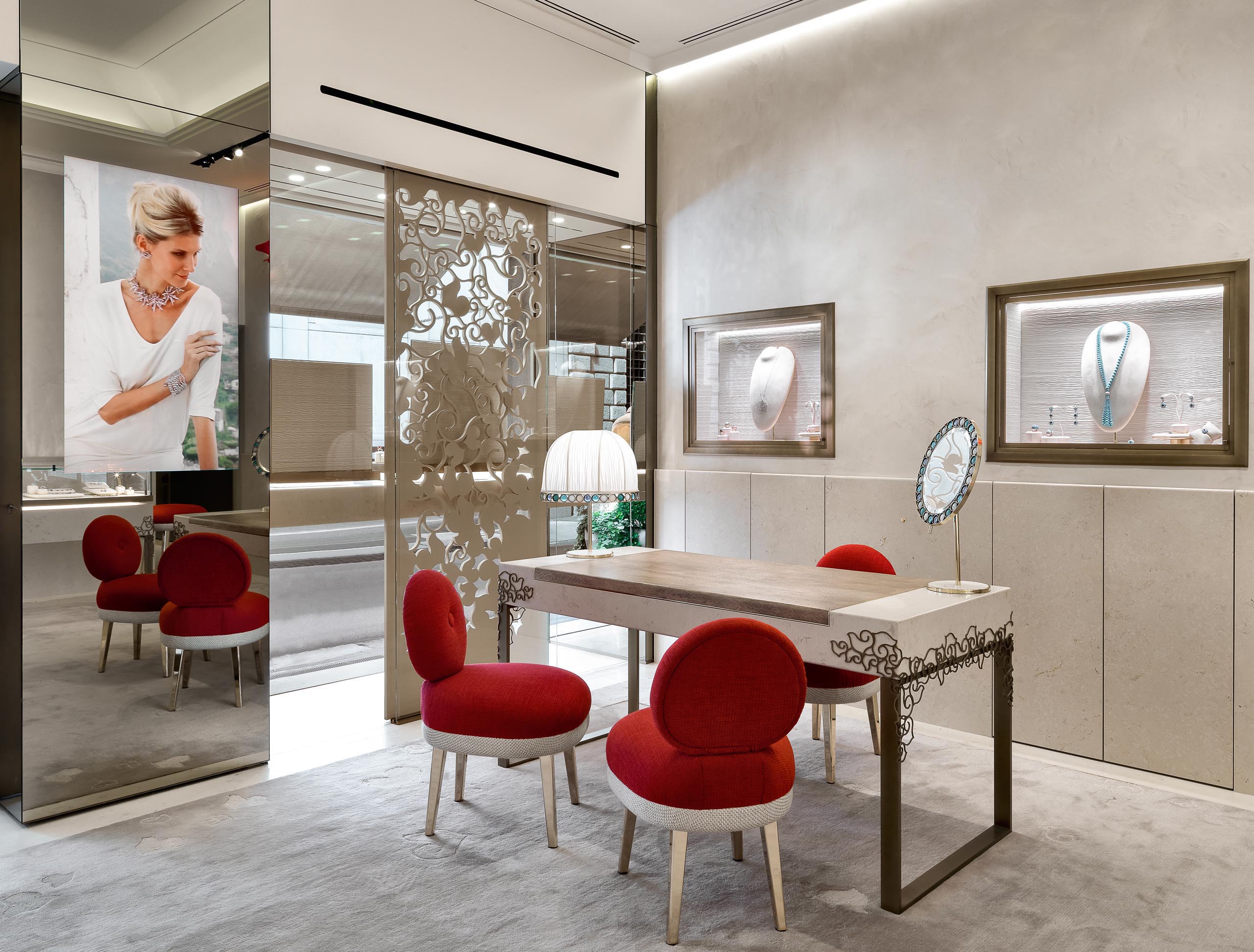 A boutique that embodies tradition and modernity: it brings back to a past made of sea, rocks, earth, where you can breathe fresh clean air, with strong colors and feelings. The modernity of the lines that design the architectural elements complete the daily and patient work of the jewel craftsmen.